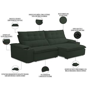 Altura: 110 cm | Color: Verde | ColorFamily: Verde | ColorSimple: Verde | ColorSupplier: Verde | Cor: Verde | Cor dos pés: -1 | Densidade da espuma do assento: D-26 | Desenho do tecido: Liso | Estilo: Moderno | Fabricante: Lyam Decor | Formato do sofá: Linear | Largura: 250 cm | Linha: Sala de Estar, Living | Material: Madeira de lei (Eucalipto) devidamente tratada e aparelhada com reforços e cantoneiras e chapas em M | Material de enchimento do encosto: 100% em fibra siliconada. | Material do estofamento: Veludo | MaterialFamily: Tecido, Madeira | Mecanismo de abertura do produto: -1 | Model: Ártico | Orientação do Sofá: -1 | OriginCountry: Nacional | OriginState: PR | Peso: 80 Kg | Peso máximo suportado: 100 kg | ProductContents: 01 Sofá | ProductHeight: 250 cm | ProductInstructions: Produto para uso em ambiente interno, nao devendo ficar exposto ao sol, calor e umidade excessivos. | ProductLength: 98 cm | ProductWarranty: 90 dias após o recebimento do produto | ProductWeight: 80 kg | ProductWidth: 110 cm | Profundidade: 98 cm | Quantidade de Caixas de embalagem: 1 | Requer montagem: Não | SizeDescription: Altura: 110 cm x Largura: 250 cm x Profundidade: 95 cm | SupplierSimpleName: Sofá Retrátil Reclinável Para Sala de Estar Living 250cm Ártico F04 Veludo Verde - Lyam Decor | Tipo de produto: Sofá | Unidades por kit: 1