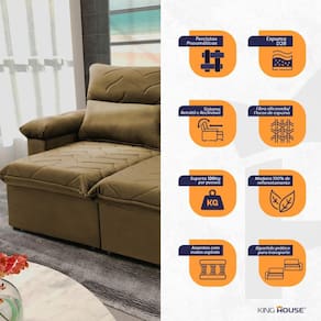 Ele possui encosto reclinável em cinco posições, proporcionando-lhe mais conforto na hora do descanso. Não para por aí: seu assento retrátil conta com espuma D28 e molas espirais, transformando seu sofá em uma verdadeira cama para assistir seu filme preferido.