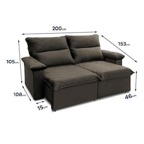 Ele possui encosto reclinável em cinco posições, proporcionando-lhe mais conforto na hora do descanso. Não para por aí: seu assento retrátil conta com espuma D28 e molas espirais, transformando seu sofá em uma verdadeira cama para assistir seu filme preferido.