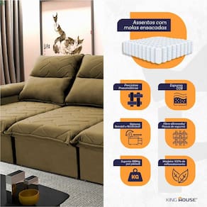 Ele possui encosto reclinável em cinco posições, proporcionando-lhe mais conforto na hora do descanso. Não para por aí: seu assento retrátil conta com espuma D28 e molas ensacadas, proporcionando conforto extra, transformando seu sofá em uma verdadeira cama para assistir seu filme preferido.