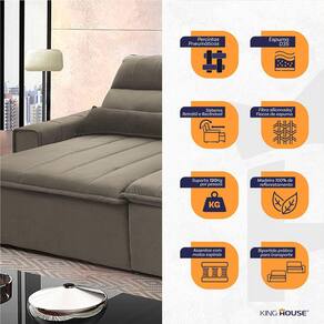 Ele possui encosto reclinável em cinco posições, proporcionando-lhe mais conforto na hora do descanso. Não para por aí: seu assento retrátil conta com espuma D35 e molas espirais, transformando seu sofá em uma verdadeira cama para assistir seu filme preferido.