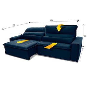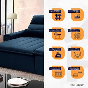 Ele possui encosto reclinável em cinco posições, proporcionando-lhe mais conforto na hora do descanso. Não para por aí: seu assento retrátil conta com espuma D35 e molas espirais, transformando seu sofá em uma verdadeira cama para assistir seu filme preferido.