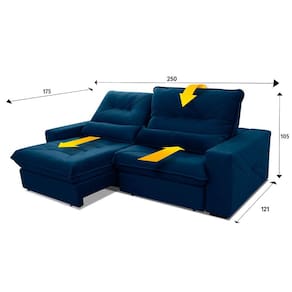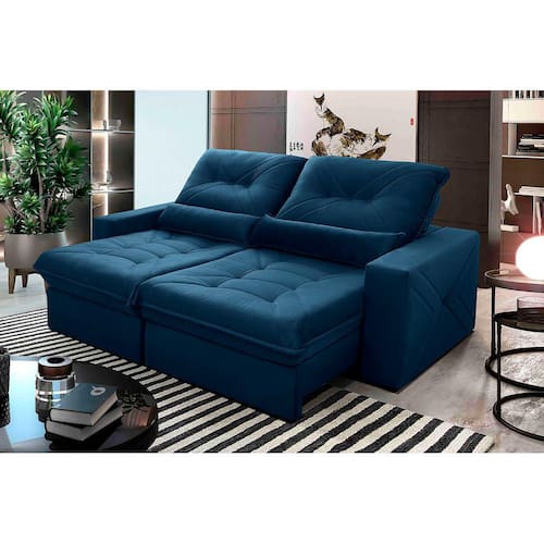 Sofá Retrátil Reclinável Sevilha 2,50m Suede Velut Azul Marinho c/ Molas Ensacadas - King House - Azul Turquesa