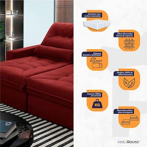Ele possui encosto reclinável em cinco posições, proporcionando-lhe mais conforto na hora do descanso. Não para por aí: seu assento retrátil conta com espuma D35 e molas ensacadas, transformando seu sofá em uma verdadeira cama para assistir seu filme preferido.