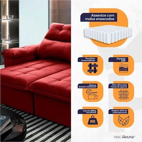 Ele possui encosto reclinável em cinco posições, proporcionando-lhe mais conforto na hora do descanso. Não para por aí: seu assento retrátil conta com espuma D28 e molas ensacadas, proporcionando conforto extra, transformando seu sofá em uma verdadeira cama para assistir seu filme preferido.