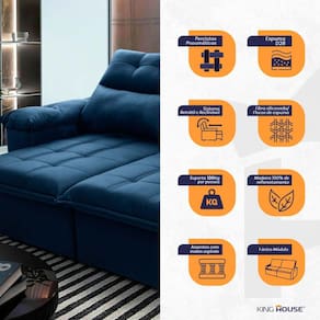 Ele possui encosto reclinável em cinco posições, proporcionando-lhe mais conforto na hora do descanso. Não para por aí: seu assento retrátil conta com espuma D28 e molas espirais, transformando seu sofá em uma verdadeira cama para assistir seu filme preferido.