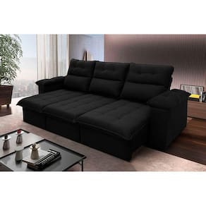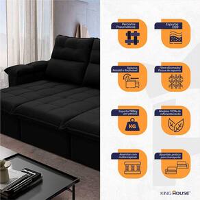 Sofá Retrátil Reclinável Verona 2,30m Suede Velut Preto c/ Molas no Assento - King House