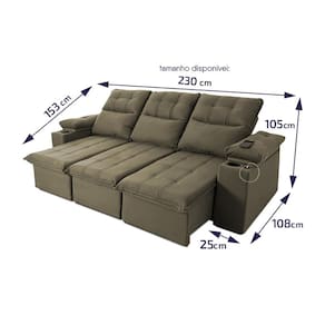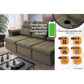 Sabe aquela sensação de felicidade e satisfação que você sente quando faz uma boa escolha ?! Pois bem, essa é a sensação de comprar um sofá Verona. Um produto moderno, com design elegante que combina com qualquer ambiente e o deixa ainda mais lindo e aconchegante. Conta com a tecnologia do carregador Usb Embutido + porta copos.Ele possui encosto reclinável em cinco posições, proporcionando-lhe mais conforto na hora do descanso. Não para por aí: seu assento retrátil conta com espuma D28 e molas espirais, transformando seu sofá em uma verdadeira cama para assistir seu filme preferido.