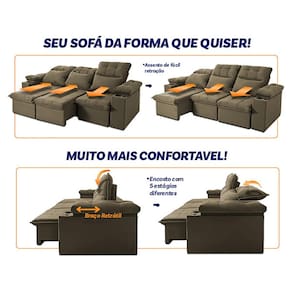Sofá Retrátil Reclinável Verona USB + Porta Copo 2,30m Suede Velut Tabaco c/ Molas no Assento - King House - Marrom Cacau
