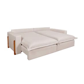 AS IMAGENS SÃO MERAMENTE ILUSTRATIVAS E PODEM SOFRER VARIAÇÕES DE COR E PEQUENOS DETALHES DE ACORDO COM O SEU MONITOR, ILUMINAÇÃO DO AMBIENTE E ATÉ MESMO A SUA PERCEPÇÃO VISUAL.Sofà RetrÃtil ReclinÃvel Zeus com Molas Ensacadas no Assento Tecido Linho Cru 2,10m