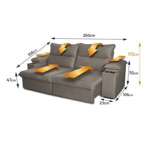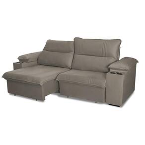 Sofá Retrátil Tesla 2,60m USB e Porta Copo Suede Tabaco - Marrom Cacau