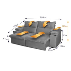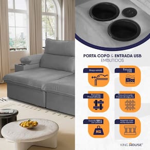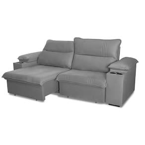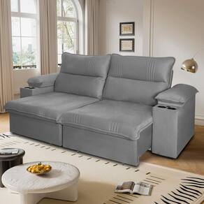 Sofá Retrátil Tesla 2,80m USB e Porta Copo Suede Cinza