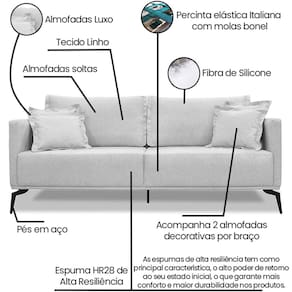 O Sofá Liv foi desenvolvido para quem procura uma peça que une conforto e estilo. Com 180cm de largura e revestimento em linho de alta qualidade, proporciona um toque sofisticado e aconchegante, ideal para qualquer ambiente. Os pés em aço carbono garantem resistência e um design moderno, enquanto o encosto conta com almofadas soltas em fibra de silicone, oferecendo um suporte macio. O assento fixo possui percintas elásticas italianas e molas bonel, combinado com espuma HR28 e plumante em silicone, que garantem qualidade e conforto. Acompanha também duas almofadas decorativas, que adicionam um charme extra e permitem personalizar ainda mais o seu produto. Perfeito para diversos ambientes, o Sofá Liv é a escolha ideal para quem busca aliar conforto e beleza no dia a dia. Este móvel chegará em sua casa separado em 01 volume.