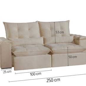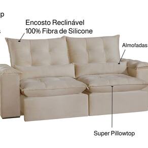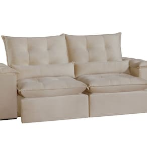 Sofá San Paulo Retrátil e Reclinável - Assento com Molas – 250 cm Veludo Bege Marfim