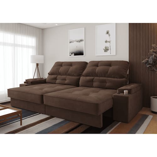O Santiago é uma luxuosa peça de mobiliário, oferecendo um amplo conforto com seus 200 cm de largura. Sua funcionalidade retrátil e reclinável permite ajustes personalizados para um relaxamento ideal. Revestido com suede importado, proporciona uma sensação de suavidade ao toque e uma estética elegante. Além disso, possui um toque moderno com porta-copos embutidos nos braços, proporcionando praticidade, e uma entrada USB integrada para carregar dispositivos móveis enquanto relaxa. É importante observar que as cores podem variar conforme as configurações do monitor, e os acessórios mostrados nas fotos não acompanham o produto. Marca: Cialar