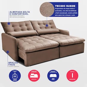 Transforme sua sala em um verdadeiro oásis de conforto e elegância com o Sofá Sem Caixa Sem Caixa Retrátil Celeste. Este modelo não só eleva o charme do seu ambiente, como também proporciona uma experiência de descanso incomparável por conta de sua tecnologia de Espuma SoftGel D40 com ThermoGel. Sendo um modelo 2 em 1, ele pode virar uma excelente cama de casal e ainda pode se transformar m um belo sofá.