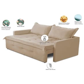 Sofá Sem Caixa Retrátil e Reclinável 1,65m com Molas Bianca Suede Bege Madelina Decor
