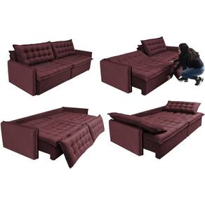 Sofá Sem Caixa Retrátil E Reclinável 1,75m Cama Inbox Versátil Suede Velusoft Vinho