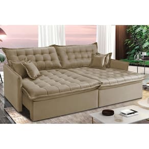 Sofá Sem Caixa Retrátil E Reclinável 1,95m Cama Inbox Versátil Suede Velusoft Bege
