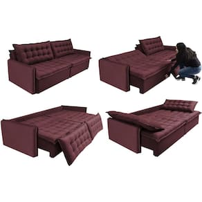 Sofá Sem Caixa Retrátil E Reclinável 1,95m Cama Inbox Versátil Suede Velusoft Vinho