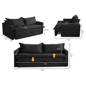 Sofá Sem Caixa Retrátil e Reclinável 2,00m com Molas Bianca Suede Preto Madelina Decor
