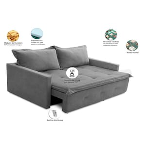 Encosto:Composto por 2 almofadas soltas com enchimento de 80% fibra e 20% flocos que proporcionam maciez e conforto.