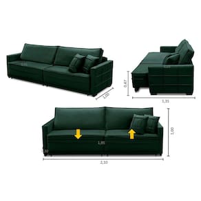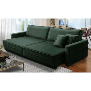 Sofá Sem Caixa Retrátil Reclinável 2,10m Karen Veludo Verde Adonai Estofados