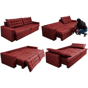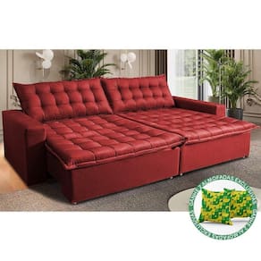 Sofá Sem Caixa Retrátil Reclinável 2,15m Cama Inbox França Velusoft Vermelho