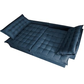 Sofá Sem Caixa Retrátil Reclinável 2,75m Cama Inbox França Velusoft Azul