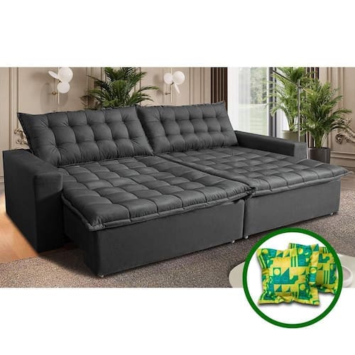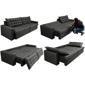 Sofá Sem Caixa Retrátil Reclinável 2,75m Cama Inbox França Velusoft Cinza