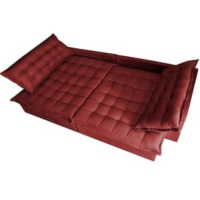 Sofá Sem Caixa Retrátil Reclinável 2,75m Cama Inbox França Velusoft Vermelho