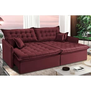Sofá Sem Caixa Retrátil Reclinável 2,75m Cama inBox Versátil. com Pillow Top e Molas Velusoft - Vinho