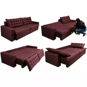 Sofá Sem Caixa Retrátil Reclinável 2,95m Cama Inbox França Velusoft Vinho