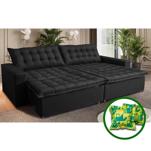 Sofá Sem Caixa Retrátil Reclinável 2,95m Cama inBox França. Velusoft - Preto