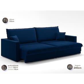 Sofá Tango 2,40m sem caixa, Retrátil e Reclinável Veludocristal - NETSOFAS - Azul Marinho