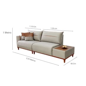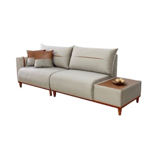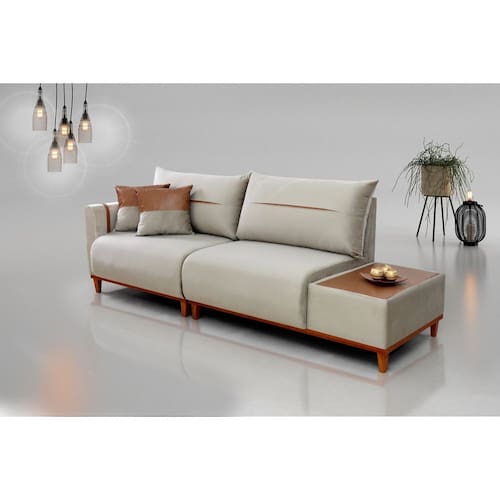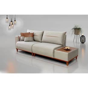 Sofá Trento 3 Lugares Com Base de Madeira e com um design diferenciado, mas sem abrir mão do conforto, o Sofá Trento é o que você estava procurando. Seus pés e base em madeira de reflorestamento agregam mais design para o móvel, enquanto suas percintas elásticas e espumas de alta qualidade fazem com que ele forneça o apoio e a elasticidade necessárias, mas ainda assim permaneça macio e aconchegante. Estrutura feita em madeira de reflorestamento (eucalipto), método ecologicamente correto, com controle de umidade. percintas elástica e Mola espiral revestidas com espuma de poliuretano. As almofadas são preenchidas com fibra siliconada. Produto Montado: Sim Acompanha Almofadas extras: Não Almofada do assento: Fixa Almofada do encosto: Removível Altura do assento até o chão: 60.0000 Altura do Braço: 70 cm Altura do Encosto: 100 cm Altura dos Pés: 14 cm Ambiente Principal: Sala de Estar codigo_ean: 7909903874622 Complexidade da Montagem: Baixa: pode ser montado por uma pessoa sozinha Consistência do Assento: Firme Cor: Bege Cor do Produto: Bege Densidade do Assento: D-26 Enchimento do Assento: Fibra Siliconada Firmeza do Assento: Firme Itens Inclusos: 01 modulo esquedo + 01 modulo direito com mesa Largura do Sofá Maior: cm Necessita Montagem: Sim Nível de Conforto: Confortável Origem do Produto: Nacional Peso: 78 kg Pet Friendly: Não Possui Percintas Elásticas: Sim Possui Pés: 08 Possui Rodízio: Não Recomendações de Uso, Manutenção e Limpeza: Instruções de uso e conservação de seu sofá:Recomenda-se que a limpeza seja feita com um aspirador de pó com ponta modelo escova.Para a limpeza use exclusivamente um pano macio umedecido em solução de água e sabão neutro, em seguida passe uma flanela seca sem comprimir ou esfregar.Em caso de manchas, usar um pano limpo, esponja ou papel absorvente, sem comprimir ou esfregar o tecido assim que tiver ocorrido. Revestimento do Braço: Suede Sistema de Montagem: Kit Ferragens Suporta Até (kg): 200 kg Tecido Predominante: Suede Tipo de Encosto: Fixo Tipo de Mola: Molas Bonnel Marca: VivaroDecor