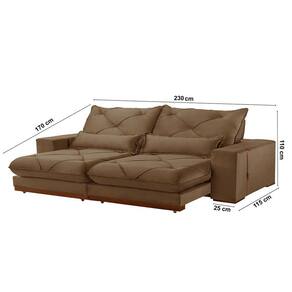 Assento: Retratil com Percinta elastica, molas ensacadas e molas espirais, espuma D-28, pillow de 25 cm.