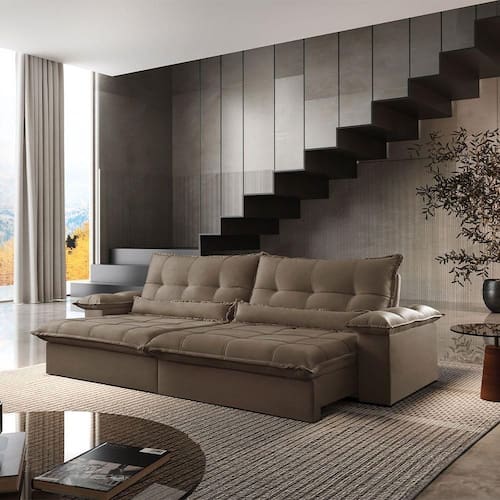 Design diferenciado, qualidade impecavel. A sua sala de estar so esta completa na presenca de um bom sofa e nada mais gostoso do que receber a familia ou curtir os seus momentos de descanso junto com nosso modelo Vega! Pensado para quem quer aliar bom gosto uma estrutura reforcada para o uso diario, a peca tem madeira na composicao e revestimento de toque agradavel para garantir a qualidade que voce merece.