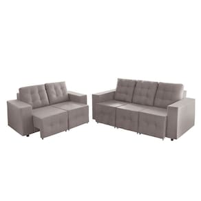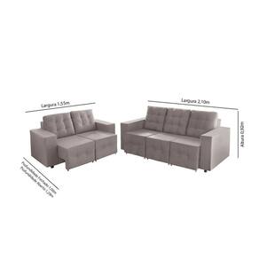 Sofá Veneza 5 Lugares, Conjunto 3e2 - Retrátil - De Casa Décor E Estofados Cinza Claro