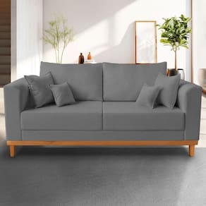 Sofá Viena 03 Lugares Com Base de Madeira Linho Grafite - Madeira Prima Deccor
