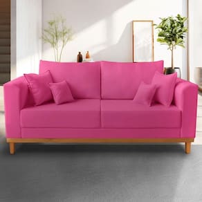 Sofá Viena 03 Lugares Com Base de Madeira Suede - Madeira Prima Deccor