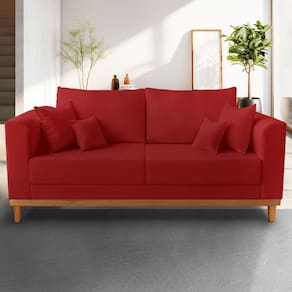 Sofá Viena 03 Lugares Com Base de Madeira Suede - Madeira Prima Deccor