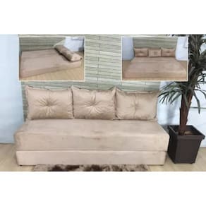 Sofanete Sofá com 3 Almofadas Multiuso Bege - AL Móveis