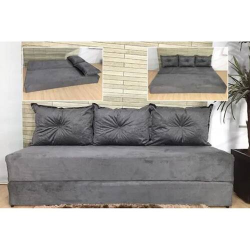 Sofanete Sofá com 3 Almofadas Multiuso Cinza - AL Móveis