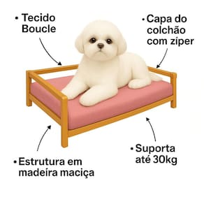 Sofazinho Pet Snoopy Madeira Com Colchonete - Bela Manu Proporcione mais conforto, estilo e bem-estar para o seu melhor amigo com o Sofazinho Pet Snoopy de Madeira com Colchonete – Bela Manu Decor. Ideal para cães e gatos de pequeno e médio porte, este produto une beleza, funcionalidade e qualidade premium em cada detalhe.   Desenvolvido com estrutura em madeira pinus tratada, acabamento com verniz P.U. na cor Imbuia e base de sustentação em MDF de 3mm, o Sofazinho Pet Snoopy é resistente, durável e traz um toque elegante à decoração do seu ambiente.   O colchonete é confeccionado com espuma D18 de alta qualidade, garantindo maciez e suporte confortável para seu pet. A capa conta com zíper para facilitar a higienização e está disponível em dois tipos de tecido – Bouclé ou Sued, em várias opções de cores modernas e sofisticadas.   Atributos do Produto: • Nome: Sofazinho Pet Snoopy de Madeira com Colchonete – Bela Manu Decor • Indicação: Cães e gatos de pequeno e médio porte • Estrutura: Madeira Pinus com acabamento em Verniz P.U. (cor Imbuia) • Base de apoio: MDF de 3mm • Colchonete: Espuma D18 com 5cm de altura • Revestimento do colchonete: Tecido Bouclé ou Sued (Capa removível com zíper)   Cores disponíveis: • Bouclé Bege • Bouclé Persa • Bouclé Splash • Sued Preto • Sued Bege   Dimensões totais: • Comprimento: 72cm • Profundidade: 57cm • Altura total: 18cm • Altura do chão até o colchonete: 5cm • Altura do colchonete: 5cm • Peso suportado: até 30kg   Destaques: Design moderno e funcionalEstrutura robusta e seguraColchonete removível e fácil de lavarIdeal para pets que merecem conforto e carinhoAcabamento refinado para combinar com qualquer decoração Onde usar? O Sofazinho Pet Snoopy da Bela Manu Decor é perfeito para ambientes internos como: • Quartos • Salas • Closets • Cantinhos pet personalizados Leve, compacto e fácil de transportar, ele se adapta facilmente a qualquer espaço.   Por que escolher a Bela Manu Decor?   Somos especialistas em móveis pet com design contemporâneo, conforto superior e qualidade garantida. Cada produto é feito com cuidado, responsabilidade ambiental e materiais de alto padrão. Seu pet merece esse carinho!   Disponível para compra imediata! Aproveite o melhor custo-benefício e garanta agora o conforto e a elegância que seu pet merece.