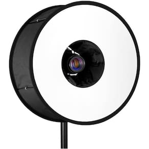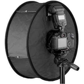 Softbox Circular Para Flash De 46Cm - F32 - 1 Unidade Softbox circular para flash de 46cm Descrição: Softbox redonda, universal e dobrável com anel magnético. Difusor de 45 cm para fotografia macro e retrato. Características: O diâmetro máximo é de 46 cm, o diâmetro interno é de 13 cm. Transforma seu Speedlite em um flash de anel para obter iluminação comparável a de um Beauty Dish, tornando-o excelente para retratos por suavizar os traços do rosto e manter uma iluminação homogênea. Vem com uma rosca para unidade de flash para corrigir e ajustar a largura. A armação é feita em metal, fácil de dobrar e transportar.