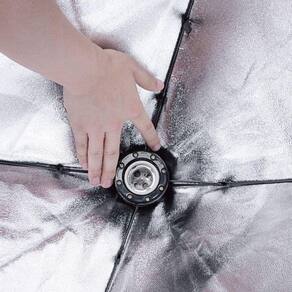 Softbox Luz contínua 50x70cm Soquete e27 - Kit com Tripé Haze desmontável tipo sombrinha, possui tela difusora, bocal com rosca tipo E27 lâmpada comum com chave liga / desliga, suporte com regulagem de ângulo com montagem sobre tripé, um conjunto completo de fácil montagem e transporte. Características: Haze desmontável tipo sombrinha para luz contínua.Tela difusora.Bocal com rosca tipo E27 lâmpada comum .Cabo de Força com 2,3m aproximadamente.Chave liga / desliga.Suporte com regulagem de ângulo para montagem sobre tripé.Acompanha bolsa para transporte do softbox Itens Inclusos: Tripé de Iluminação 2 metros de AlturaSuporte para tripé 3/8'Bolsa para transporte do SoftboxSoftboxDifusor branco Especificações: Tamanho: 50x70 cmPeso: 0.700 kg IMPORTANTE - Não acompanha a lâmpada.