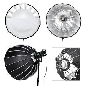 Com mecanismo de liberação rápida para configuração simples, o Softbox Parabólico RKP90 Bowens 90cm com Grade Montagem Fácil é um modificador de luz poderoso para uso em Iluminadores LED e Flash de Estúdio Bowens, que fornece diâmetro amplo de 16 lados e traz luz pronta em poucos segundos para retratos, fotografias de moda, fotografia de produtos, filmagem ao ar livre, entre outros tipos de fotografia e produções de estúdio. O softbox Circular Compacto RKP90 é o equipamento ideal para fornecer uma luz suave mais focada com os difusores ou sombras mais nítidas quando sem difusores. A estrutura parabólica hexadecágono é reforçada por 16 hastes de suporte duráveis, que agora se encaixam com a pressão para baixo de seu suporte Bowens Mount amplamente compatível, economizando valioso tempo no set. Seu formato também promove distribuição uniforme de saída de luz para uma luz suave e uniforme em qualquer imagem. Devido à sua forma parabólica, o Softbox de Estúdio RKP90 apresenta um interior prateado para maximizar a saída da fonte de luz e vem com um difusor interno e um difusor frontal de 1.5 Stops e 2.5 Stops respectivamente, além de uma grade de tecido de 40 para maior capacidade de modelagem de luz, tornando a iluminação suave e agradável. O tecido interior reflexivo reduz os pontos onde a luz não alcança. Use a grade para controlar com precisão a direção da luz ou os difusores internos para obter diferentes níveis de suavidade. As hastes do Softbox Parabólico para Luz Contínua possuem alavancas de liberação individuais, você pode montar e desmontar o softbox de maneira bem simples. utilizando suporte Bowens universal, o Softbox Parabólico de 90cm é perfeito para uma variedade de Iluminadores LED Bowens Mount, também é compatível com Flashes de Estúdio Bowens. além disso, uma bolsa de armazenamento e transporte está inclusa, permitindo guardar ou levar o equipamento a qualquer lugar.Principais Características: Softbox Circular Hexadecágono de 90cm, distribuição de luz suave e uniforme Montagem Padrão Bowens, fácil encaixe e desmontagem, ampla compatibilidade sistema de configuração simples com travas de liberação rápida Interior Prateado altamente reflexivo, maximizando a produção de fotos ou vídeos difusor interno e frontal removíveis, para obter diferentes níveis de suavidade Grade de controle de luz em tecido 40º incluída Tamanho compacto e portátil para viagens e espaços apertados Acompanha Bolsa de Transporte Ideal para estúdio fotográfico, transmissão , filmagem ao ar livre, retratos, fotografia de produtos e muito mais.Iluminador, Tripé ou Iluminador não estão inclusos, são vendidos separadamente. Imagens Ilustrativas.