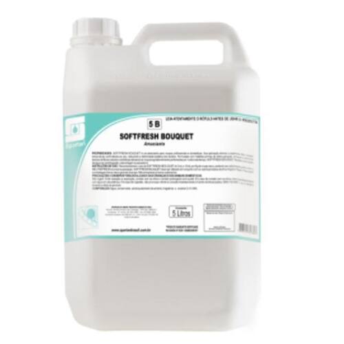 Softfresh Bouquet é um amaciante indicado para roupas de vestuário, uniformes, cama, mesa, banho, entre outros, em hotéis, motéis, pousadas, clínicas médicas, hospitais, indústrias, lavanderias profissionais que lavam roupas domésticas, etc., com fragrância Bouquet. A utilização de Softfresh Bouquet elimina a aspereza das roupas, deixando-as macias, perfumadas e confortáveis ao uso, reduzindo a eletricidade estática dos tecidos. Softfresh Bouquet é formulado com tensoativo catiônico de última geração, garantindo maior biodegradabilidade, quando comparado a maioria dos amaciantes. Softfresh Bouquet facilita a remoção de água na centrifugação e a passagem de roupa em calandras e ferro de passar. Especificações técnicas - Aparência: Líquido viscoso turvo - Cor: Azul - Odor: Bouquet - pH: 2,4 - 4,5 - Composição: Água, conservante, tensoativo catiônico, fragrância e corante. Aplicação - Amaciante para roupas. Elimina a aspereza das roupas, reduz a eletricidade estática dos tecidos e facilita a remoção de água na centrifugação, calandragem e passadoria. Diluição - Até 10ml/kg de roupa seca Instruções de uso Pode ser utilizado em dosador com água quente ou fria. Cama: 3 a 5 ml/kg de roupa seca Mesa: 3 a 5 ml/kg de roupa seca Banho: 2 a 3 ml/kg de roupa seca Vestuário: 3 a 5 ml/kg de roupa seca Roupas hospitalares: 2 a 3 ml/kg de roupa seca Atenção e cuidados - Utilizar equipamentos de proteção individual EPI para evitar o contato direto com o produto. - Descontaminar os EPIs sempre após o uso. - Não fazer refeição no local de trabalho. - Roupas contaminadas com a substância devem ser higienizadas. - Não comer, beber ou fumar durante o manuseio do produto. - Armazenar em local ventilado e em embalagens fechadas e limpas. - Não armazenar próximo a alimentos. - Não utilize outras embalagens que não a . - Manter os recipientes do produto fechados e rotulados adequadamente. Conteúdo da embalagem - 1 Softfresh Bouquet Amaciante para Roupas - 5 Litros - Spartan