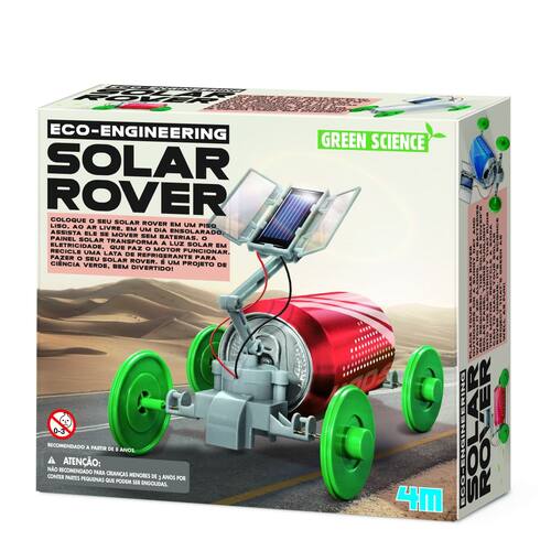 Saiba como a luz do sol é transformada em energia. O kit científico é feito para montagem manual, onde se transforma em um carro movido a energia solar. O Solar Rover movimenta-se sem baterias ou pilhas, apenas com a energia solar ou de lâmpadas de iodo, que se transformam em energia mecânica. Um projeto de ciência verde e ecológico.